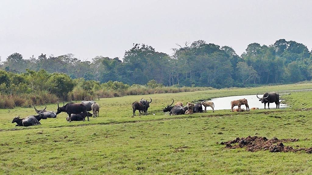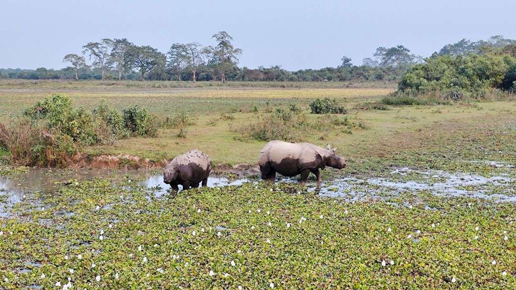 After Guwahati, we had to choose between visiting Nagaland or Kaziranga National Park in Assam. My friend, a national park enthusiast, convinced us to choose Kaziranga, and it was a decision I’m glad we made. Not only was Kaziranga stunning (I’m sure Nagaland is stunning too), but I learned it’s important to visit national parks with people who have wildlife knowledge. My friend’s knowledge of wildlife enriched our experience. We took jeep safaris to explore different zones of the park. The vast landscapes, tall grasses, and rich biodiversity made the park feel like a scene from a nature documentary. We saw deer, snakes, and a variety of birds, but the highlight was undoubtedly the one-horned rhinoceroses, as the national park is famous for its dense population. One unforgettable moment was watching two rhinos engage in a dramatic interaction, either fighting, chasing, or courting each other.