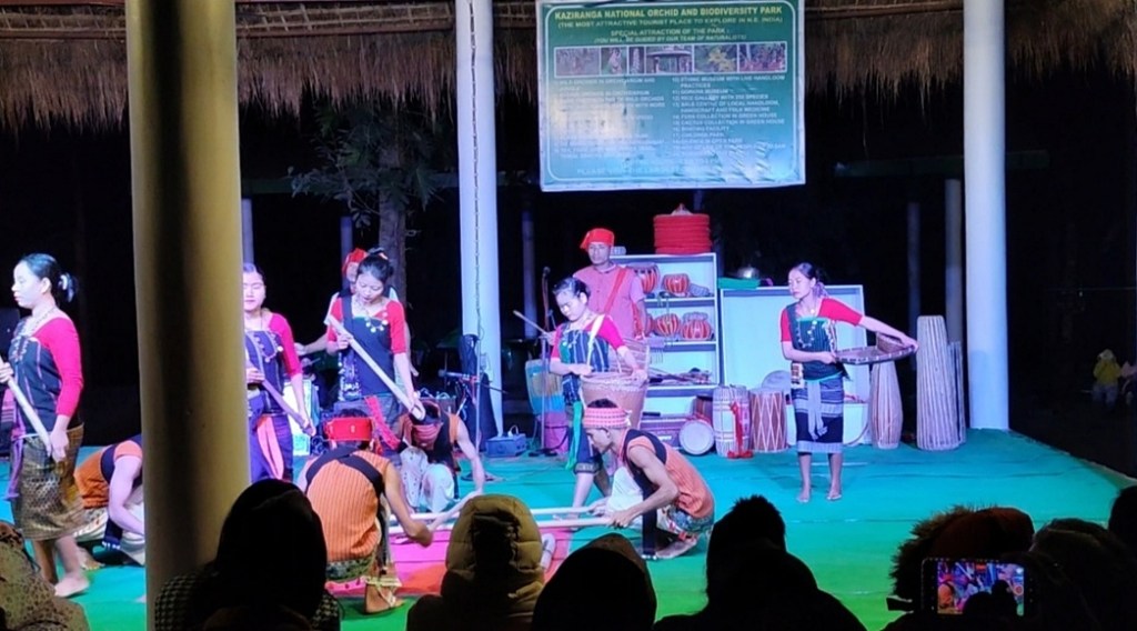 In Kaziranga, we also experienced a cultural show. The program featured songs and dances from diverse tribes in the North East, showcasing the region’s rich and diverse culture. I was particularly captivated by a dance based on rice-beating steps. It was a reminder of how rituals and cultures are intertwined with our daily activities, and how playful activities like dance function as modes of socialising and passing on cultural knowledge, apart from the obvious fun aspect.