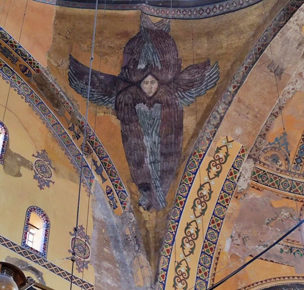 Afterward, I returned to Hagia Sophia to explore its interior, marveling at its architectural grandeur. I surreptitiously joined a Spanish tour group (couldn’t join the English one for obvious reasons) to glean more insights from the guide. The intricate details, like the hidden portraits of angels and the remnants of its Christian past, offer a glimpse into its storied history. I even spotted a small painting of something iconic in my religion, the famous trident (Trisul). I took a picture, laughing at the idea of one day creating my own conspiracy video about its supposed Hindu roots (you never know!). I then visited the Blue Mosque, admiring its serene, majestic interior.